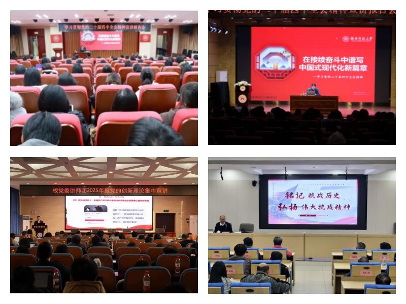 校党委委员、纪委书记姚春梅,校党委委员、副校长刘怀德,校党委委员、副校长杨震,副校长谢资清、潘安练,校党委副书记段巍等也分别走进不同学院和职能部门,宣讲党的二十届四中全会精神。他们指出,要充分认识全会的重大意义,深刻理解全会对教育、科技、人才工作的部署要求,将学习贯彻全会精神与学校实际工作紧密结合,将学习成果转化为“十五五”新担当新作为的实际成效。
